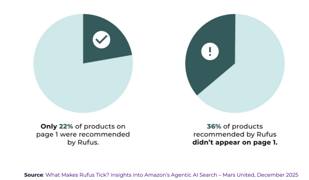Un élément est particulièrement révélateur, les produits recommandés par Rufus ne correspondent que partiellement aux résultats du moteur de recherche classique d’Amazon.