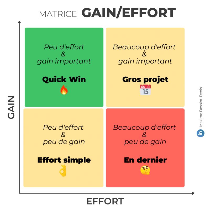 Le but : commencer par les projets « quick wins structurants » (gain élevé, effort modéré), pour construire une dynamique d’adoption.