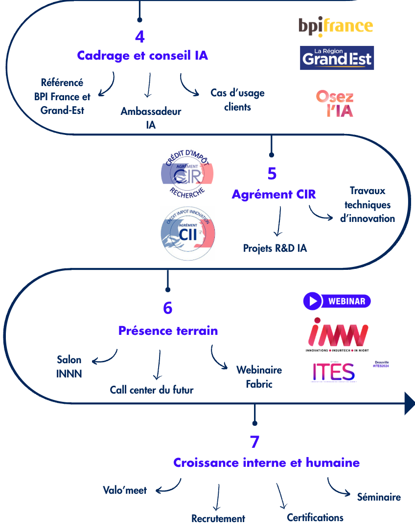 Pour la résumer simplement, nous avons choisi 7 grandes étapes, celles qui ont vraiment compté pour nos clients et pour l’équipe.