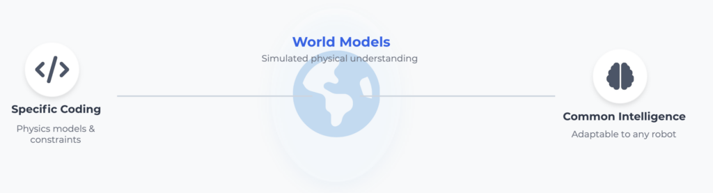 Les systèmes actuels reposent sur des chaînes rigides Perception → Planning → Control, soigneusement programmées et optimisées pour une tâche précise. Vision par ordinateur, trajectoires codées à la main, réglages physiques spécifiques : chaque robot est pensé comme un système sur-mesure.
